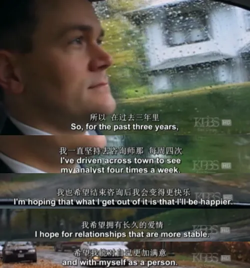 纪录片里,一位成熟、独立的精神科医生,面对个人生活的变故还是无法自解。为了能够更好地投入工作,他一直进行心理咨询(过去三年、一周四次),希望能在结束咨询后让自己变得更快乐、拥有一份长久的爱情、和对自己更满意。