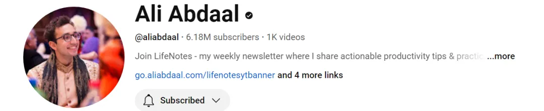 Ali Abdaal 2012年入读剑桥大学医学专业,他在求学期间积累高效学习和时间管理经验,并开始在油管分享。2018年毕业后,他成为初级医生,同时兼顾博主。由于他的视频内容涵盖学习技巧、生产力和个人成长,制作精良,所以迅速崛起。