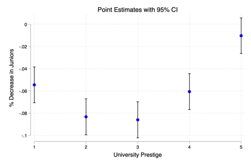 结论很明显,采纳AI技术,抑制了公司招聘初级职位的意愿,对高级职位目前没有明显影响。