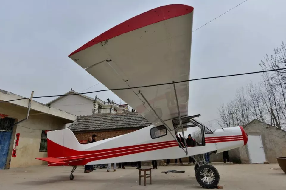江苏人李仕龙,花10万元用三个月自制一架小型飞机。(图/视觉中国)