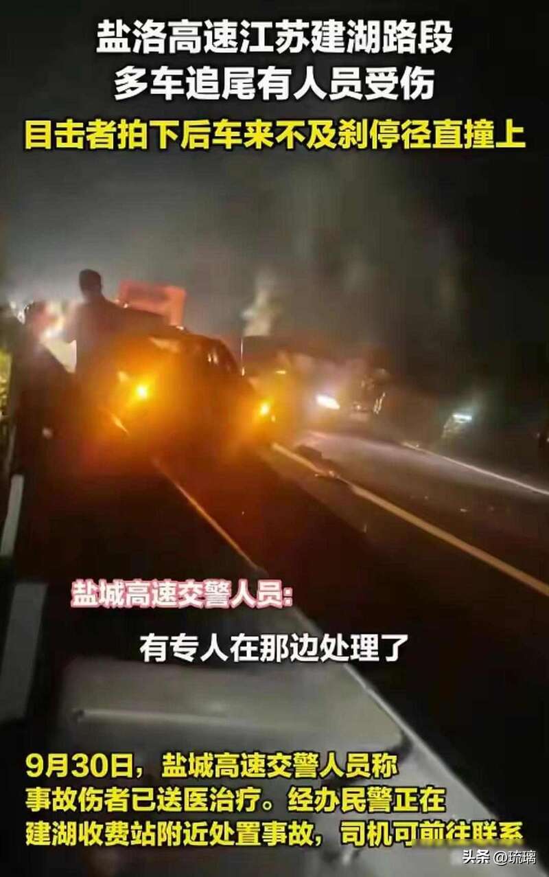 来源:倍可亲(backchina.com)9月29号晚上十点,盐洛高速江苏建湖段出事了,十二辆车撞在一起,前两辆最严重,发动机直接飞到路中间,有人受伤流血,打电话叫救护车,按错好几次号码,警察把处理点设在建湖收费站,到10月1号路才通,可伤者名单一直没完全公布,这事看着是车祸,其实是个信号。