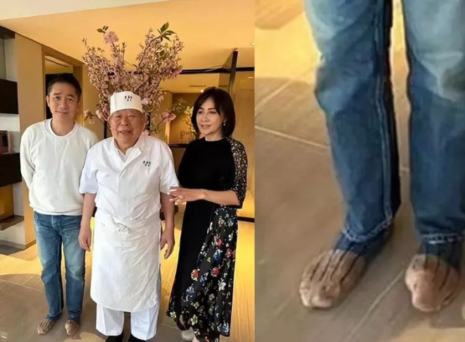 有一次,他和刘嘉玲一起在外面吃饭,需要跟厨师合影,他现场尴尬的脚趾抓地。