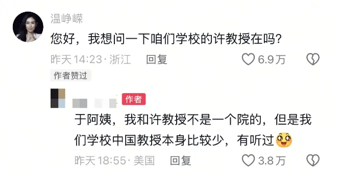 温峥嵘本人惊现评论区,现场背调许教授。