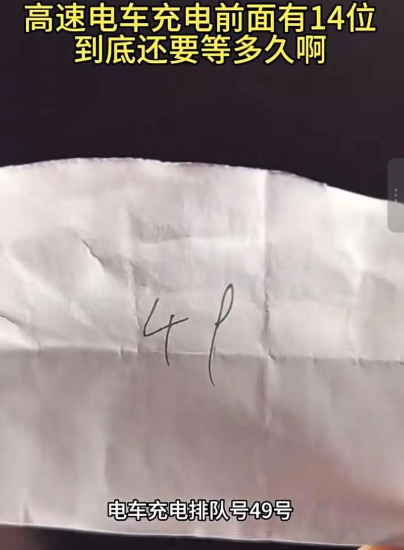 辰女士介绍,她停留的服务区一共有2个充电桩4个充电口,有师傅开始排队叫号,一辆车大概要充40分钟。最终,她在服务区等了3个小时才充上电,又花了近一个小时充电,才继续上路,为了充电一共花费了4个小时。