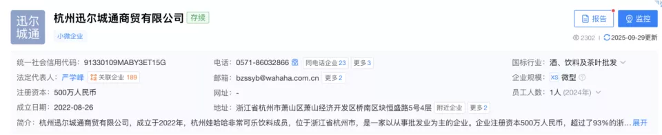 天眼查显示,迅尔城通是宏胜饮料集团100%持股孙公司,严学峰正是其法定代表人和关键管理人员。