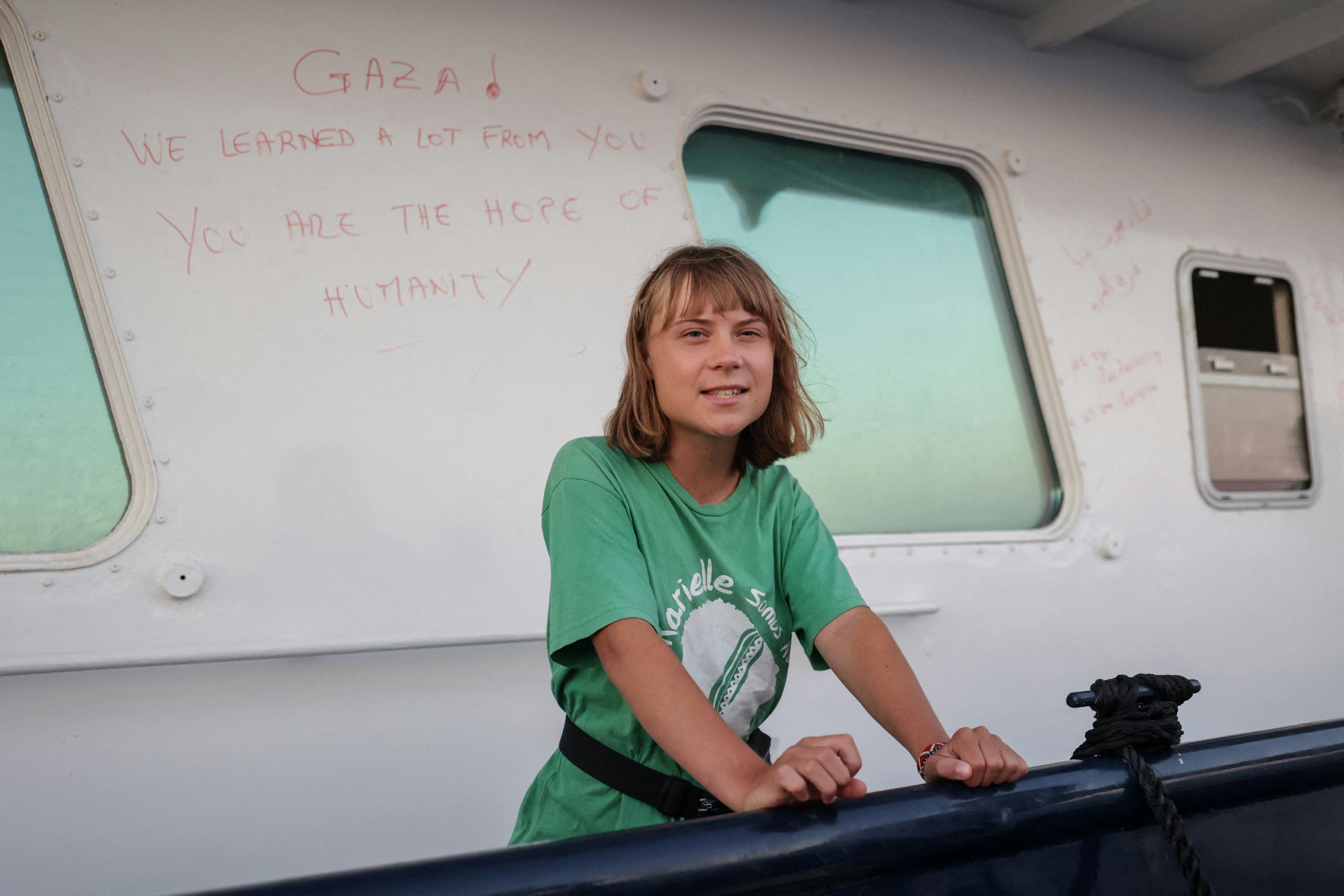 船上很多欧洲的知名人士,其中包括着名的瑞典「环保少女」通贝里(Greta Thunberg)。