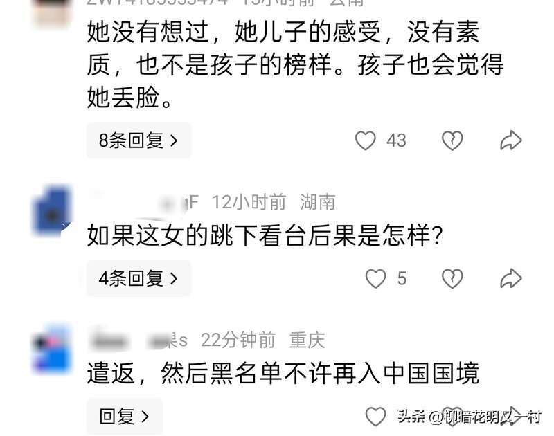 还有网友说: “她没有想过,她儿子的感受,没有素质,也不是孩子的榜样,孩子也会觉得她丢脸。”