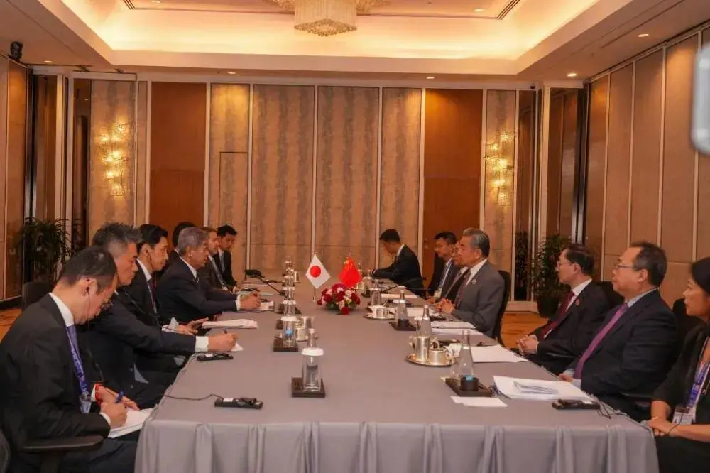 ▎2025年7月10日,中共中央政治局委员、外交部长王毅在吉隆坡会见日本外相岩屋毅。王毅表示,中国对日政策始终保持稳定性、延续性。希望日方树立客观正确对华认知,秉持积极理性对华政策。(图源:外交部)