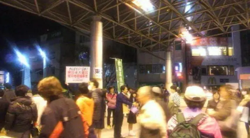 ▎2011年3月,小泉进次郎为了日本“3·11”大地震,在横须贺市的车站募捐。