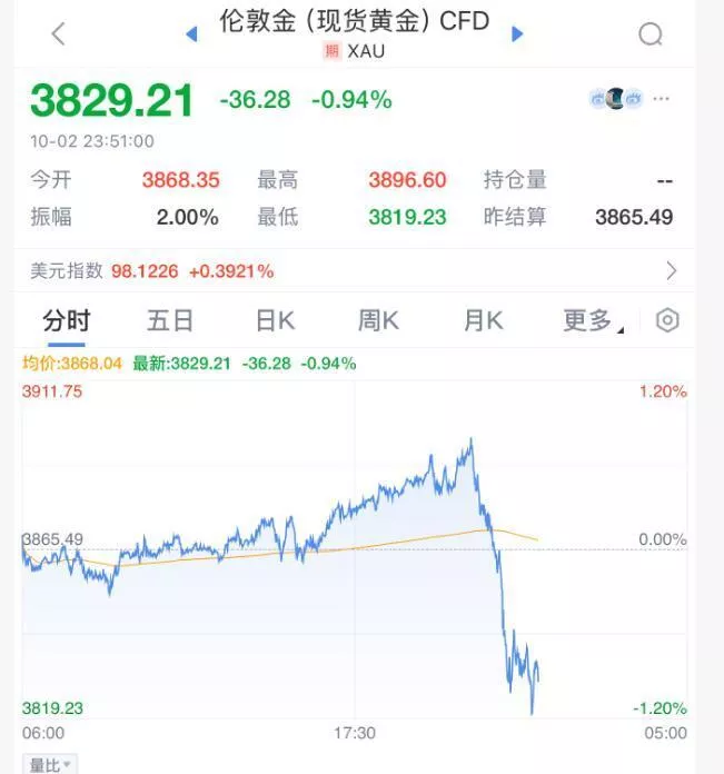 来源:倍可亲(backchina.com)10月2日晚,不断创下新高的黄金价格,突然大幅度跳水,持续走低,一度跌破3820美元/盎司,日内较最高点回落约80美元,一度跌超1%,此前一度大涨超1%至3896美元/盎司。现货白银日内跌幅超2.00%,现报46美元/盎司,此前一度站上48美元/盎司。