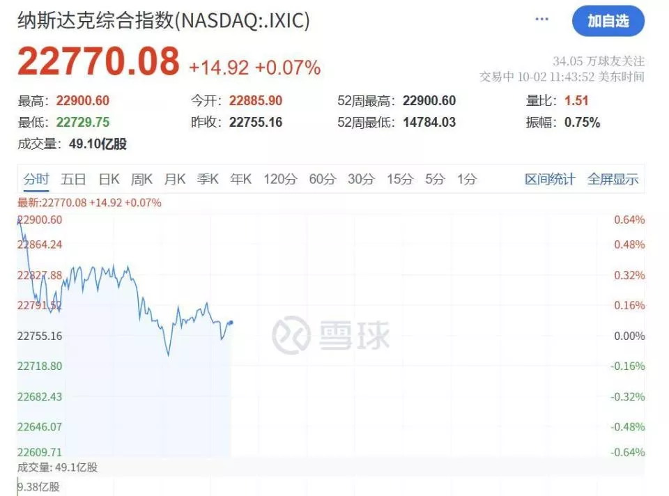 受OpenAI完成员工股权转让、估值跃升至5000亿美元、成为全球最具价值初创公司提振,纳斯达克100指数一度连创历史新高,但涨势难以为继,AI乐观情绪有所降温。