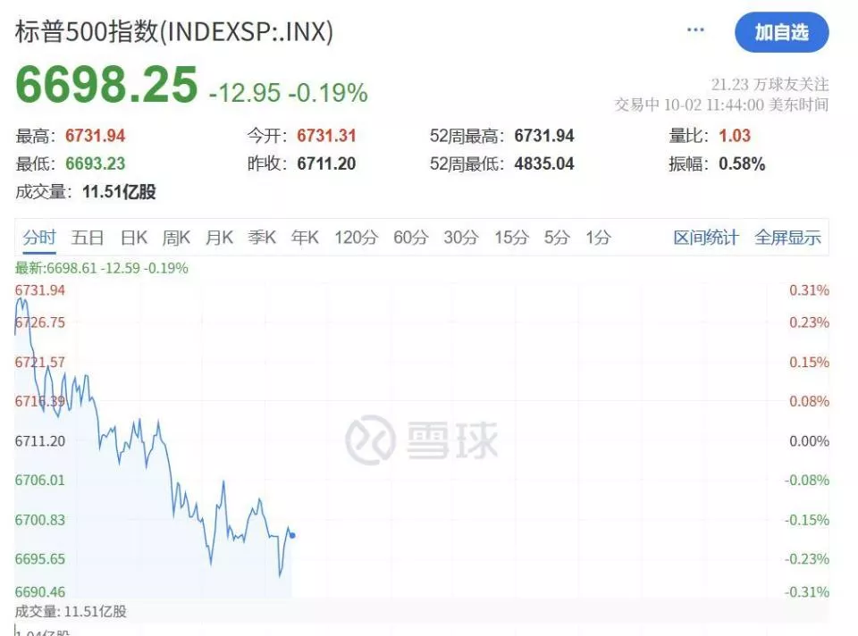 美股方面,走势跟黄金价格相似,开盘一度续创历史新高,随后高开低走,标普500指数创纪录高开后转跌。