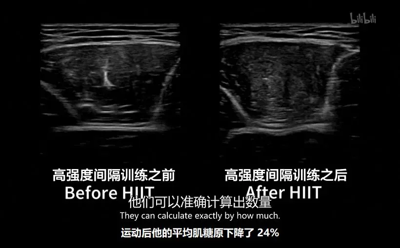沃拉尔让一名白领做了 2 分钟 3 组的 HIIT 后,对比了他运动前后的肌糖原水平。