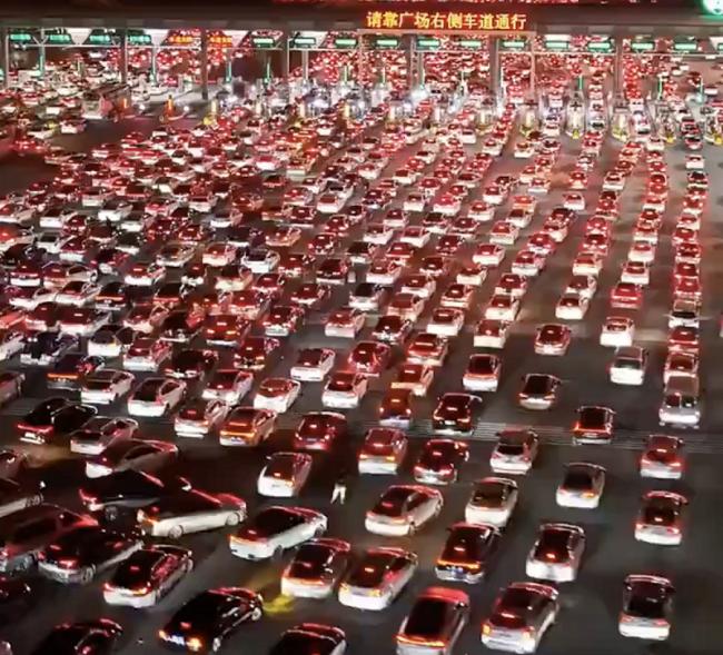 《NEXTA》昨(2)日报道,中国本月 1 至 8 日国庆长假才刚开始,就有数百万人陷入大规模的车龙。 图:撷取自《NEXTA》的 X