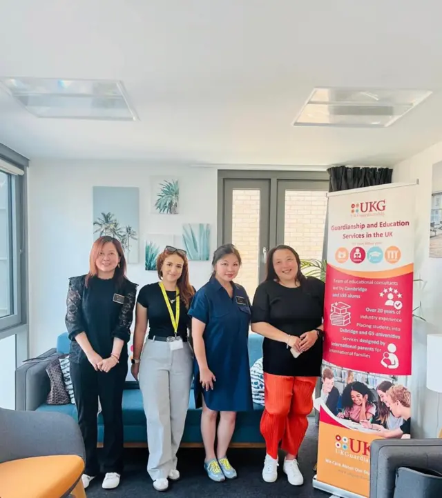 图像来源,SUSAN FANG,在伦敦的教育咨询业者方琇怡(右一)称现在华人家长们开始忧虑英国是否欢迎他们的子女来留学。