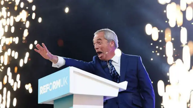 图像来源,GETTY IMAGES,以脱欧及反移民起家的英国政治人物法拉奇,所属政党支持度持续上涨,震撼英国政坛。