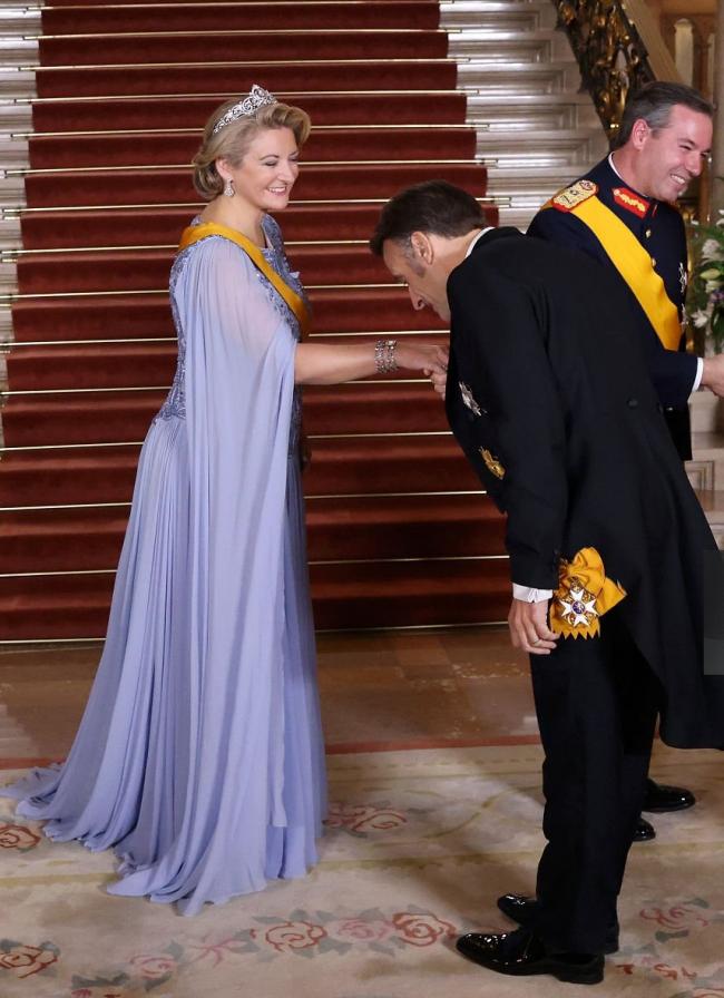 41岁卢森堡新大公夫人惊艳首秀 马克龙行吻手礼