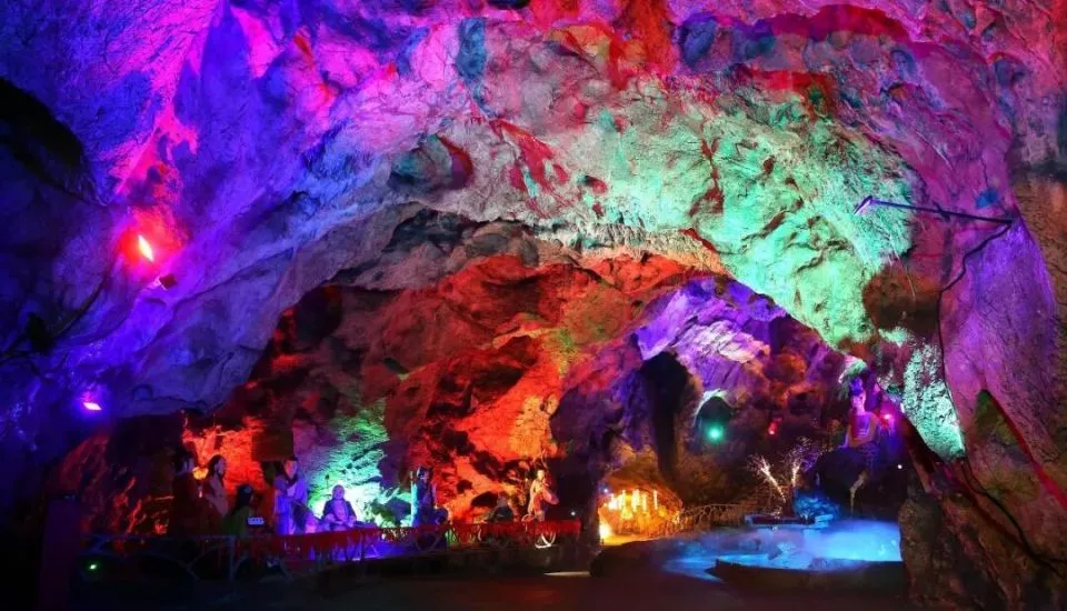 ▲ 安装着花哨刺眼灯光的溶洞。图 / 视觉中国