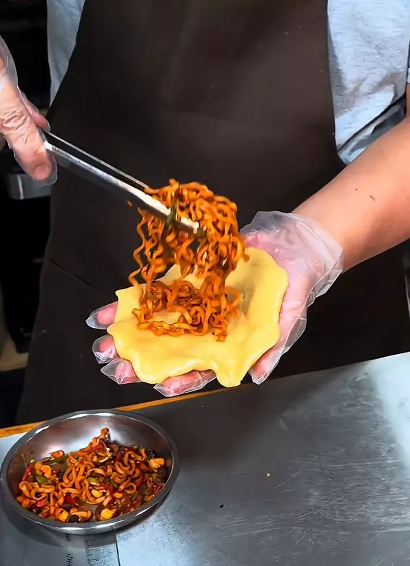浙江一名厨师制作“方便面月饼”。(视频截图)