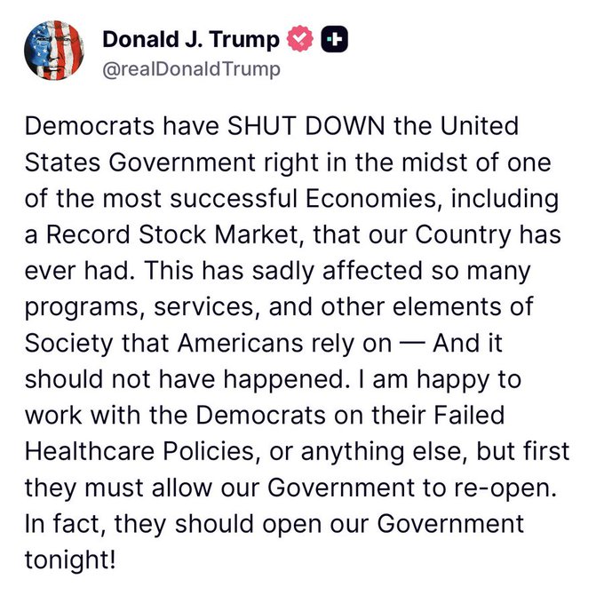 来源:倍可亲(backchina.com) 专题:川普总统 最新动态!美国总统特朗普(专题)首次表态,愿意同民主党就医疗补贴达成协议,作为结束政府停摆的条件。