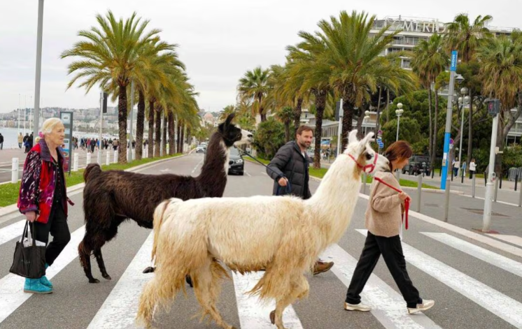 四年前,他就在尼斯(Nice)的搞过类似的“动物游行”,场面一次比一次大:从最初几十条狗,到后来连马、驴、羊驼都加入了行列。