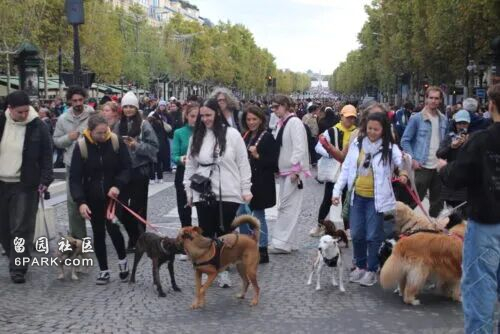 但在2025年10月5日这个星期天,他们还是被震惊了——因为香榭丽舍大街的“主角”,变成了两百多只狗。