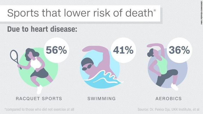 顺带一说,降低心血管疾病死亡风险的前三名还是这三种运动——