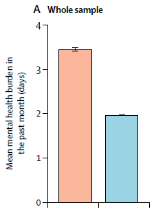 这两张图最后一栏的Household指的是家庭收入,是研究者特意放在最后进行对比的,因为他们发现,家庭年收入5万美元和家庭年收入1万5千美元的人,精神负担也不过减小10%多一点。