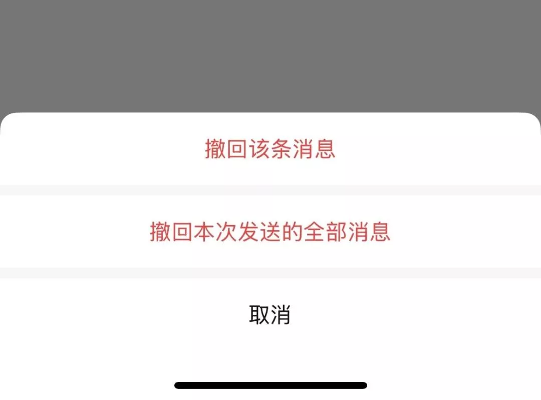 也就是说新增了“撤回本次发送的全部消息”选项,点击后就能直接一次性撤回本次发送的全部消息,不需要逐条操作撤回。
