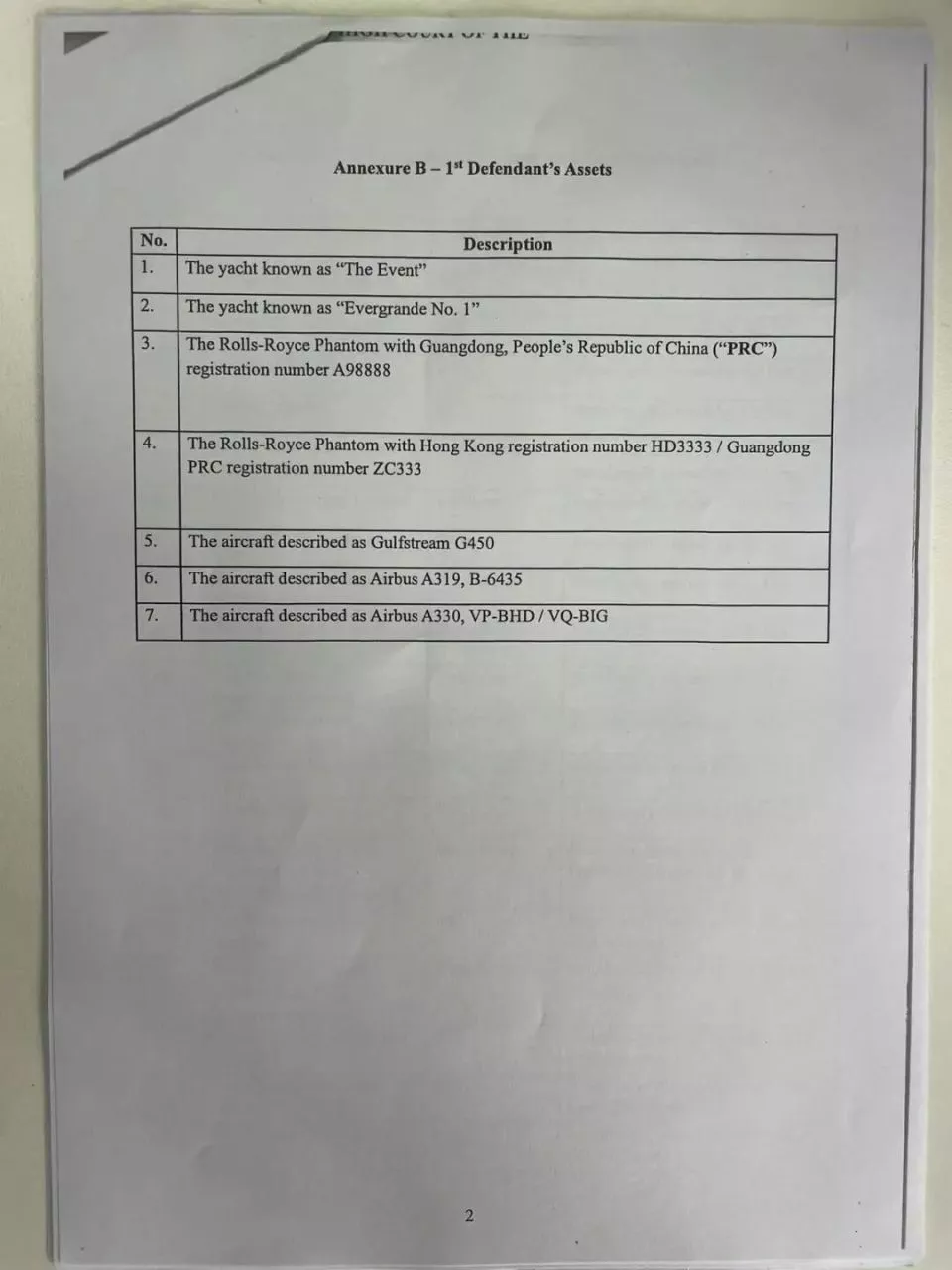 此前,香港高等法院还同意了中国恒大的清盘人的请求,要求许家印必须向清盘人告知其所有单项价值不低于5万港元的资产(包括但不限于以本人名义/他人名义持有、境内/境外资产),以及被禁止处置的资产是否已被出售等情况。