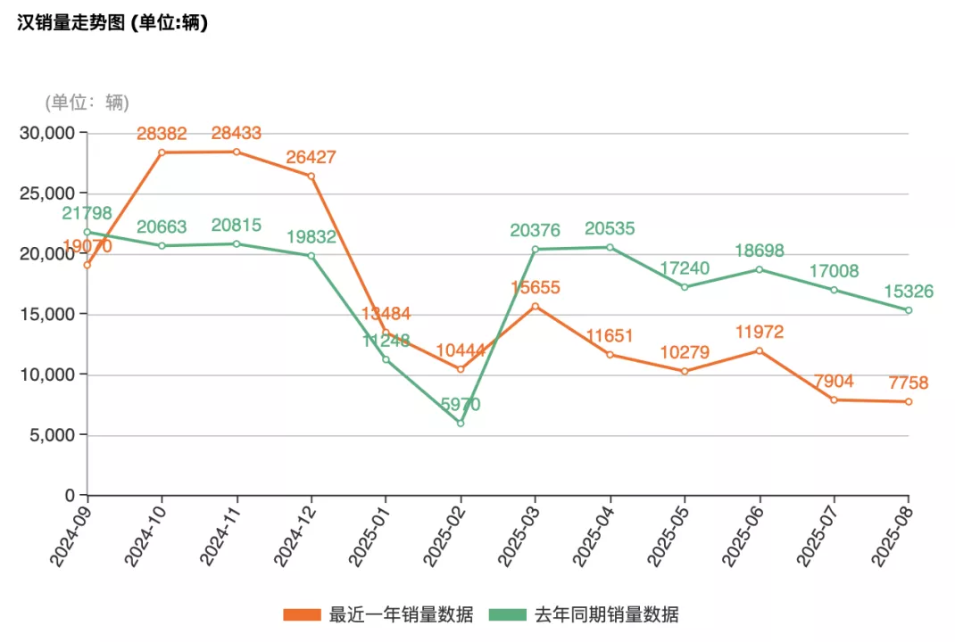 更严重的是,降价带来的品牌形象下沉,正在侵蚀比亚迪的品牌价值。海豹、汉一度是比亚迪冲击高端市场的主力车型,售价站上20万元区间,但如今已经成为网约车热门车型,让不少潜在用户望而却步。8月,汉全系销量7758辆,同比下降49.38%,而巅峰期,汉月销量站上过3万+。