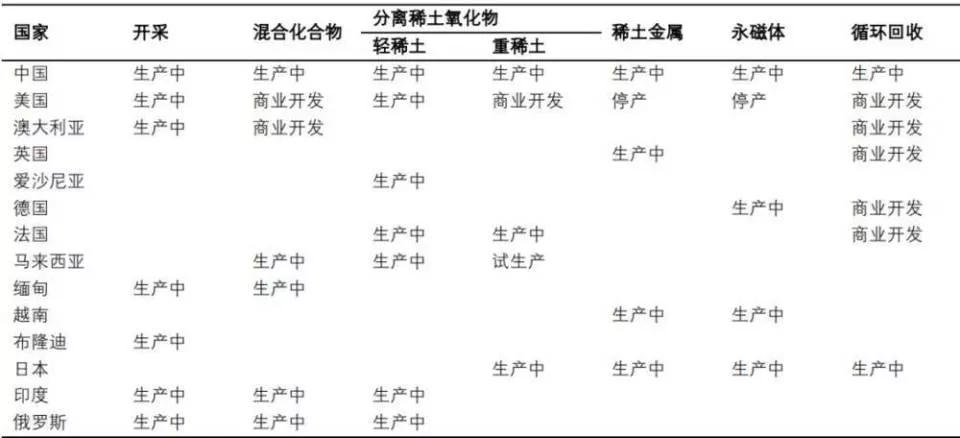 美、俄、澳虽握有资源且可采选轻稀土,却尚未建成中重稀土分离与磁材产线。德、法、日能少量分离中重稀土并制磁材,但几乎无矿,原料端依赖进口。