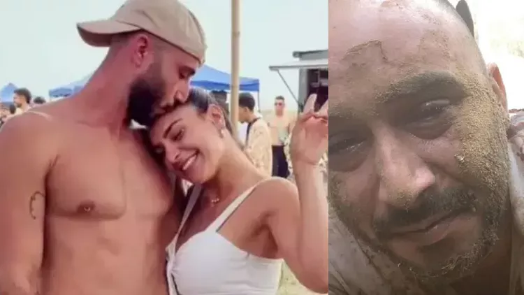 沙莱夫(左图)与女友参加音乐节,遭到哈玛斯突袭后,他背部中了二枪,装死求生(右图)。IG/Roei Shalev