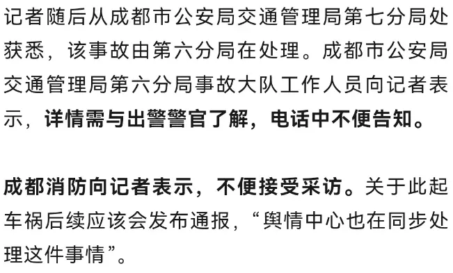 2025年10月13日凌晨3时18分许,我市天府大道南段发生一起道路交通事故。接警后,公安消防、医疗救援等部门迅速到场处置。