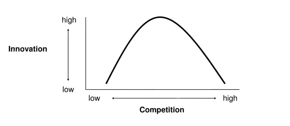 把“阿吉翁-豪伊特”的框架应用到现实,它给我们最直接的提醒就是:创新最旺盛的区间来自适度竞争。