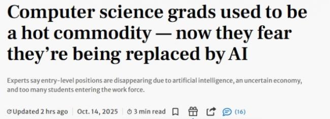 来源:倍可亲(backchina.com) 专题:华裔相关新闻,最新动态!曾几何时,计算机科学(CS)被视为最热门的专业之一,毕业生可以拿到六位数年薪,还能享受各种公司福利。然而,从2020年至2024年,安省的软件开发和程序员职位在线招聘数量下降了25%。许多CS毕业生陷入困境。专家指出,人工智能、经济不确定性,以及计算机科学毕业生数量过多,是入门岗位消失的主要原因。