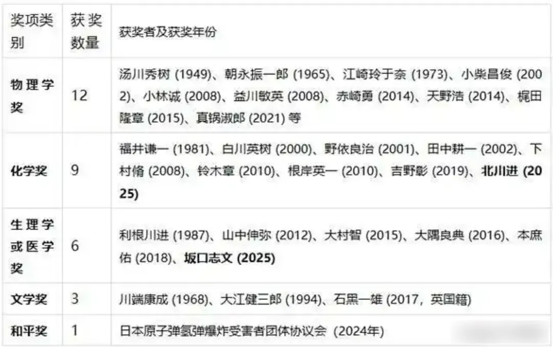 而查一下日本的诺贝尔奖得数你会发现,目前日本已经有了31个诺贝尔奖了: