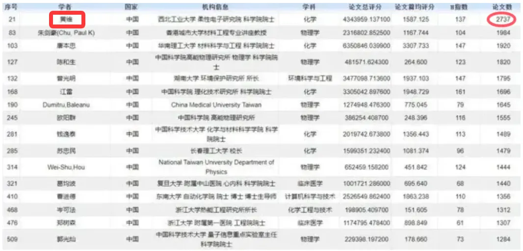 众所周知,物理界最大的大佬爱因斯坦,一辈子也只写出了11篇论文,但是这位黄维大佬呢,则是到目前为止就写出了近3000篇论文——这顶尖的论文数和这顶尖的学术水平,即便爱因斯坦看到这位大佬,我估计也得向这位大佬敬杯酒再叫声老大哥吧?