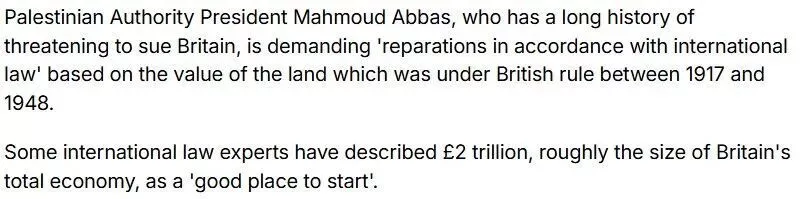 巴勒斯坦向英国寻求2万亿英镑赔款?真相来了