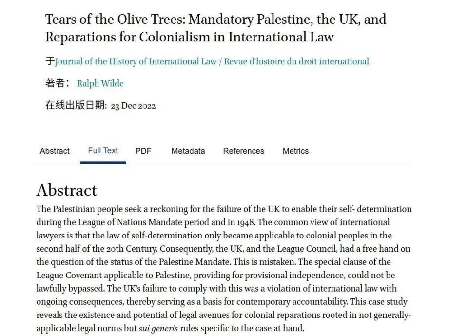 事实上,一直以来,业界都在探讨“英国违反国际法并应对巴勒斯坦作出赔偿”的法律适用性。