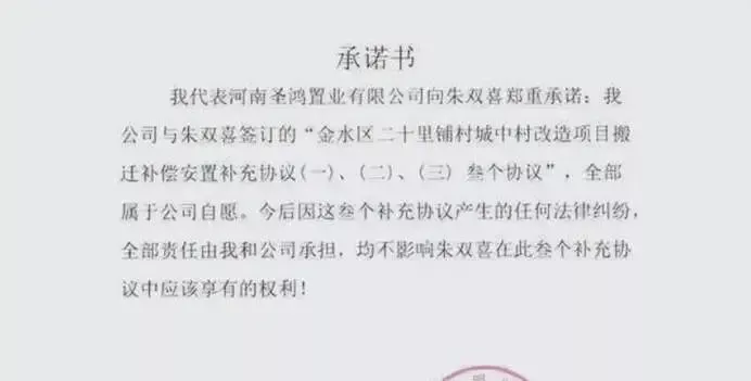 就这样僵持到2017年7月17日,开发商河南圣鸿置业有限公司的工作人员来到朱家,在当地政府工作人员见证下,双方签订了《搬迁补偿安置补充协议》。