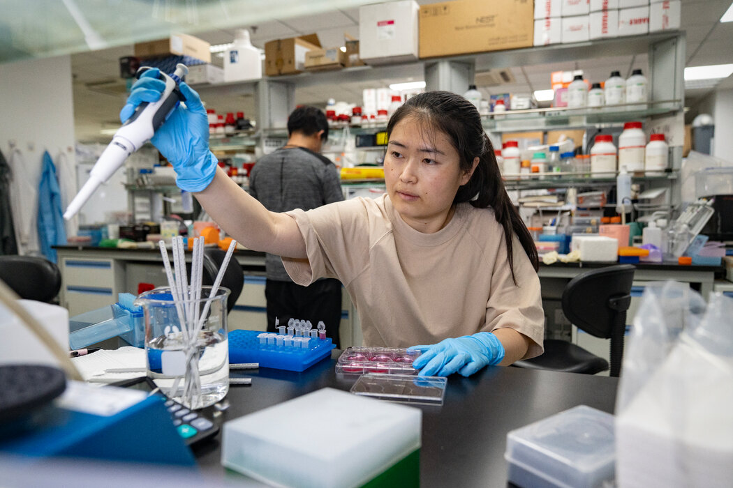 北京大学,正在做实验的学生。中国的科技专业毕业生在劳动力中所占比例低于许多西方国家。 ANDREA VERDELLI FOR THE NEW YORK TIMES