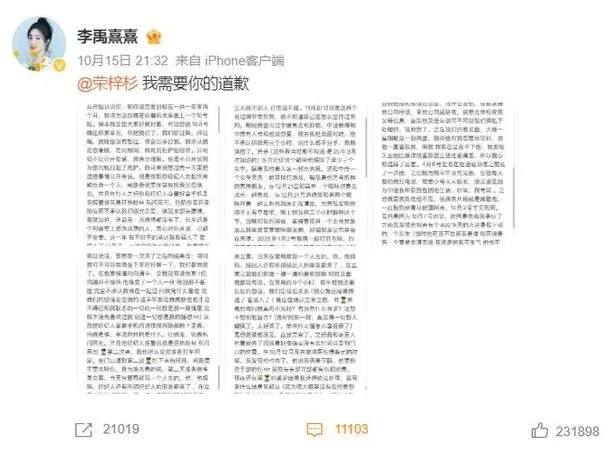 随即李禹熹就在长文中讲述了她和荣梓杉之间的故事。