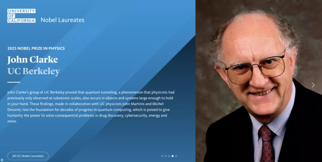 John Clarke(UC Berkeley 名誉教授)、Michel Devoret(曾任 UCSB 教授)、John Martinis(UCSB 名誉教授):三人联手摘下物理学奖,他们做的实验把“量子世界”搬到了真实电路里,开启量子计算新时代。