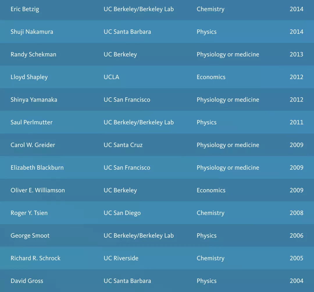 要说UC里谁最有诺奖体质,还得是老大哥——UC Berkeley。