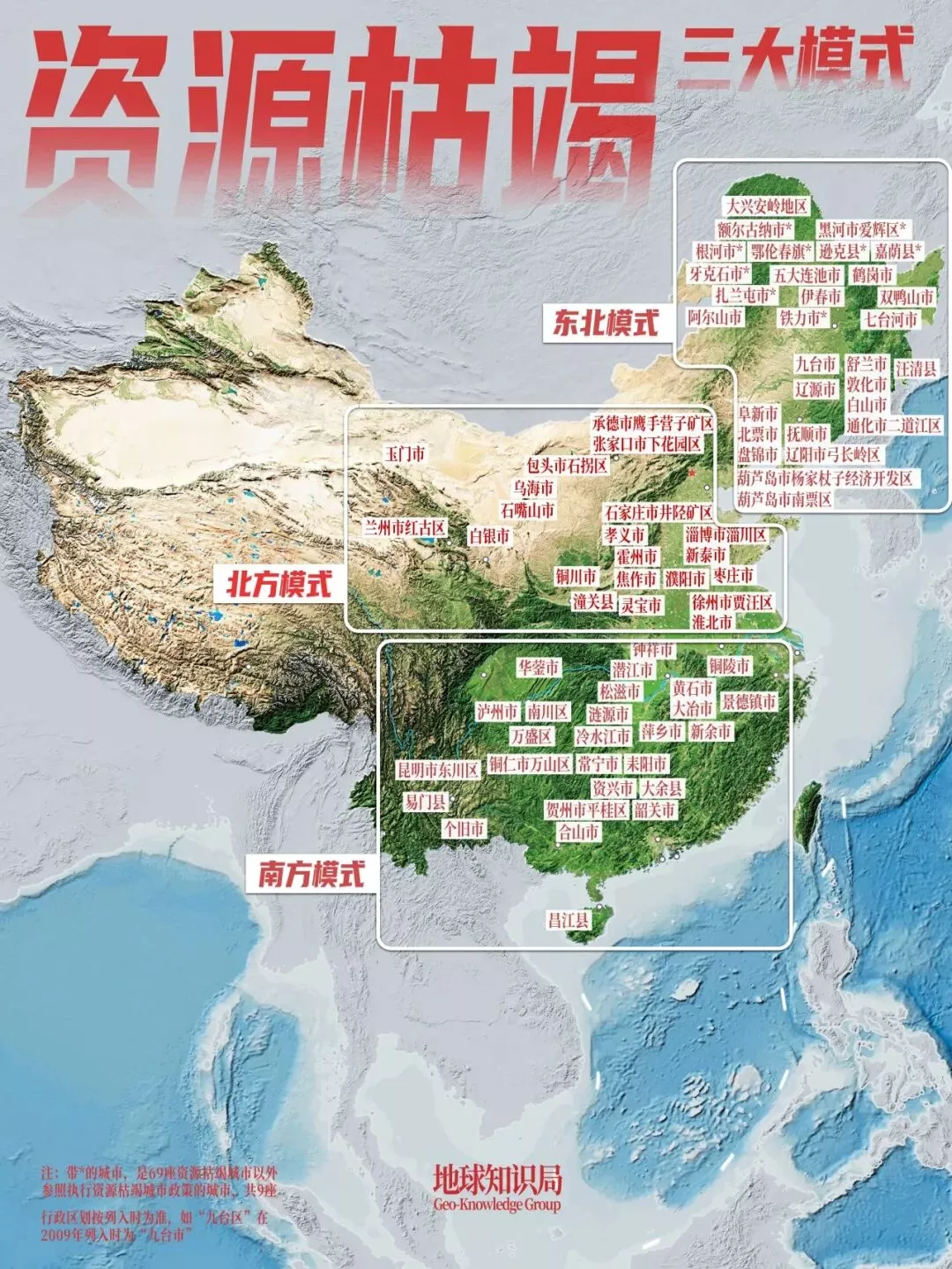 但中国资源枯竭的城市,又何止东北一处。华北和西北这两北地区,共同组成了辽阔的北方模式。相比东北老铁高度一致的“铁锈带叙事”,他们的命运可谓冰火交加。