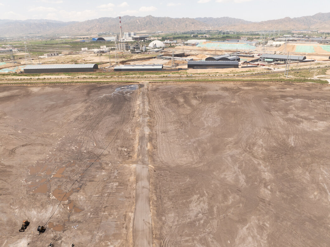 中国包头市,一个因稀土开采而枯竭的湖泊,湖中堆积着开采稀土后剩余的矿渣。背景中可见稀土精炼厂、钢铁厂和化工厂。 THE NEW YORK TIMES