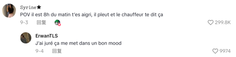 评论区大多数都是叫好声:“这司机也太会整活了吧!”、“想去塞纳-马恩坐他的车!”