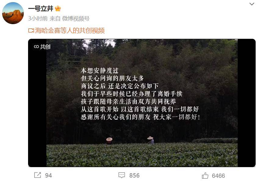 2025年8月,海哈金喜与李亚鹏办理了离婚手续。