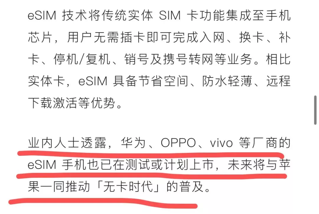 现在比较确定的是,接下来2年内,国内各大手机厂商都会陆续发布没有实体卡的机型了。